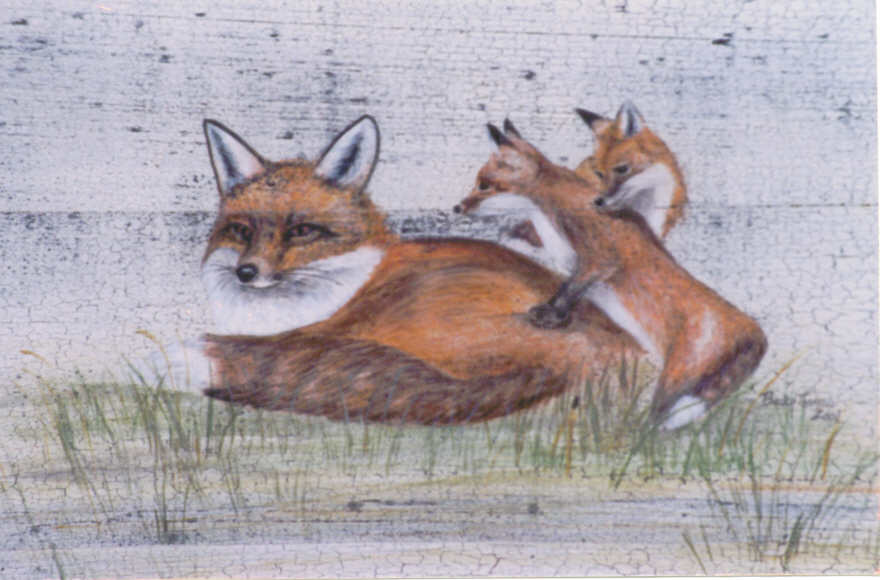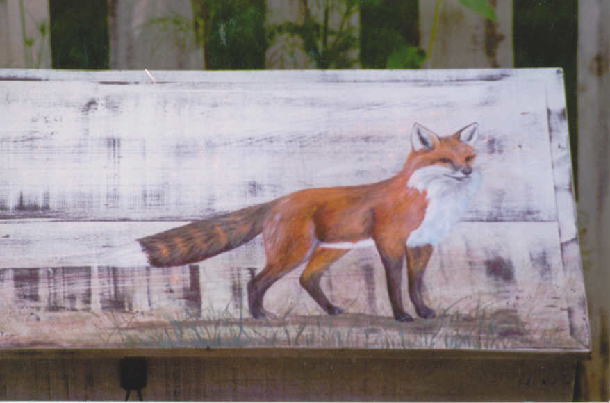 Vixen & Kits (detail) Becky M. Thomas, Artist. Hand-Painted furniture.