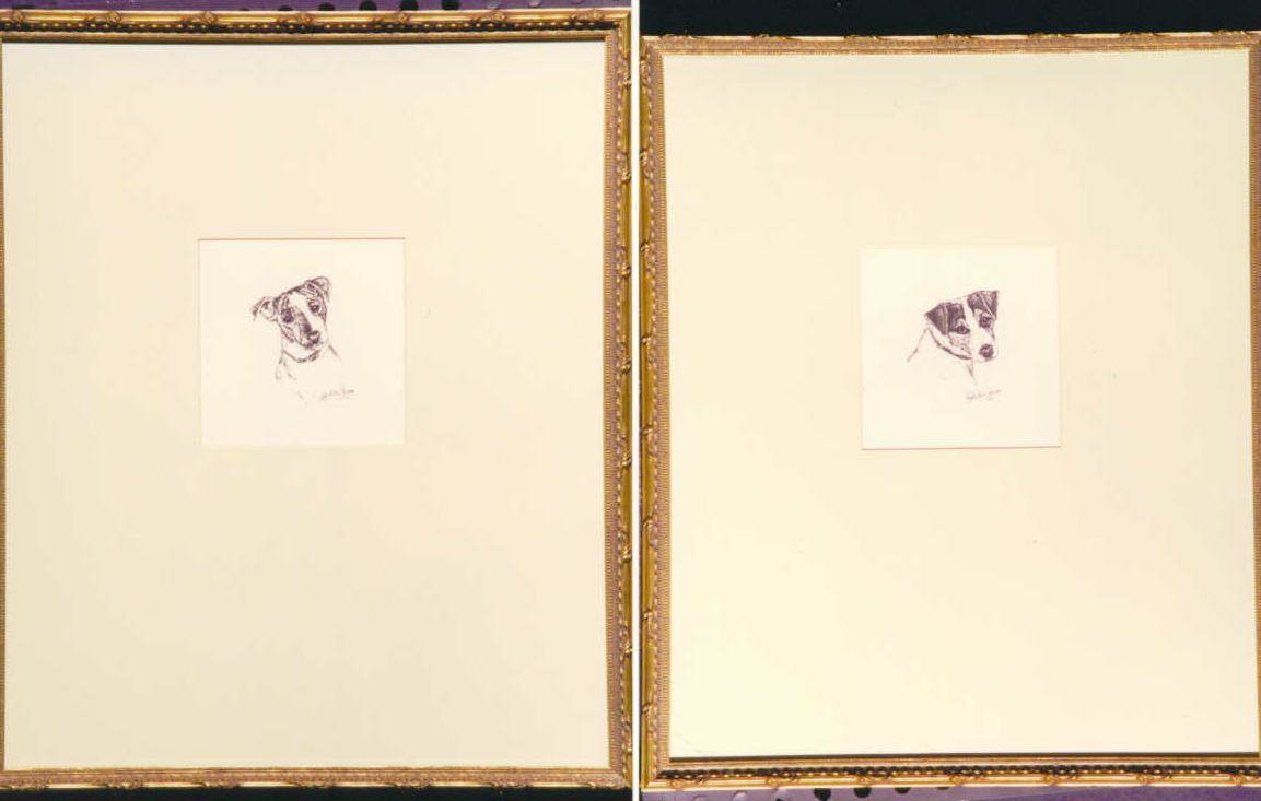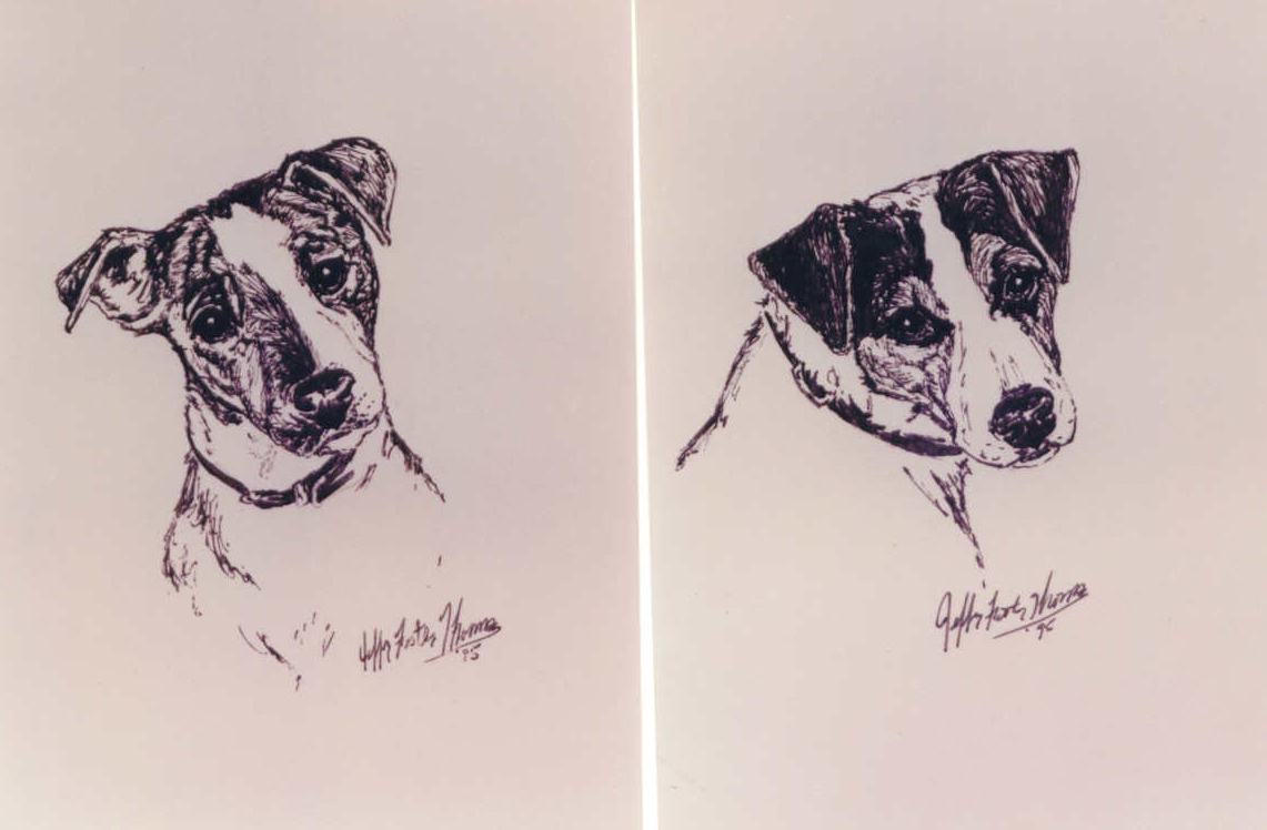 Raisin & Ryan, Jack Russell Terriers(Ink)Jeffrey Foster Thomas, Artist-Private Collection of Noreen Cothran. These are small 5 x 5 sketches. See framed at right.